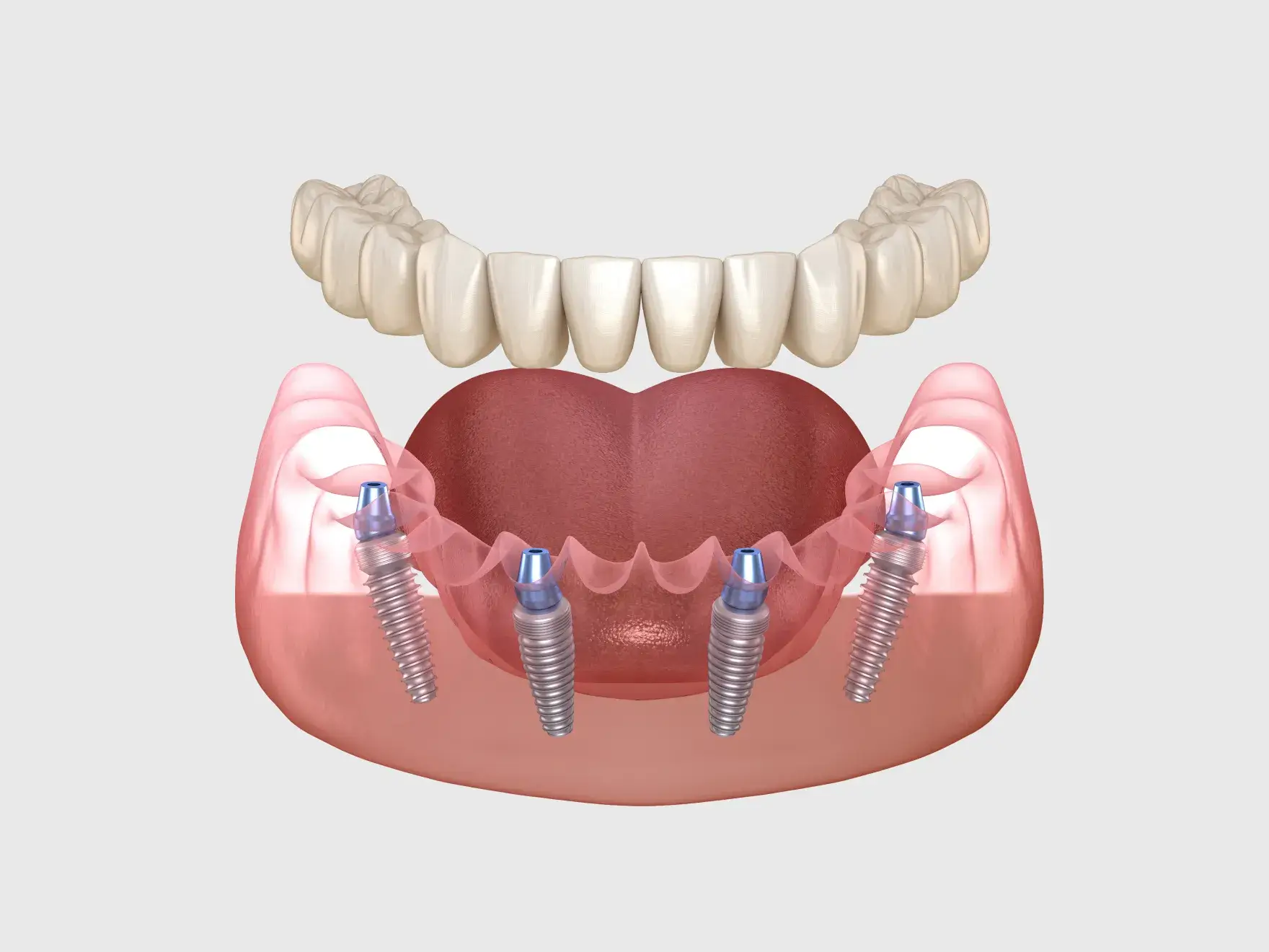 All-on-X is a category of full-arch implant treatment. The “X” stands for the number of implants used.